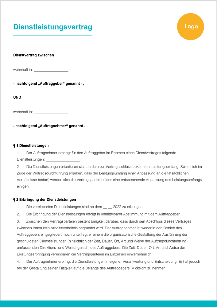 Dieser Vertrag zwischen zwei Unternehmen bietet dir eine handfeste Beweisgrundlage Mit einem Dienstleistungsvertrag als Freelancer sicherst du dich also rechtlich ab und kannst im Falle von Schwierigkeiten leichter dein Recht einfordern.