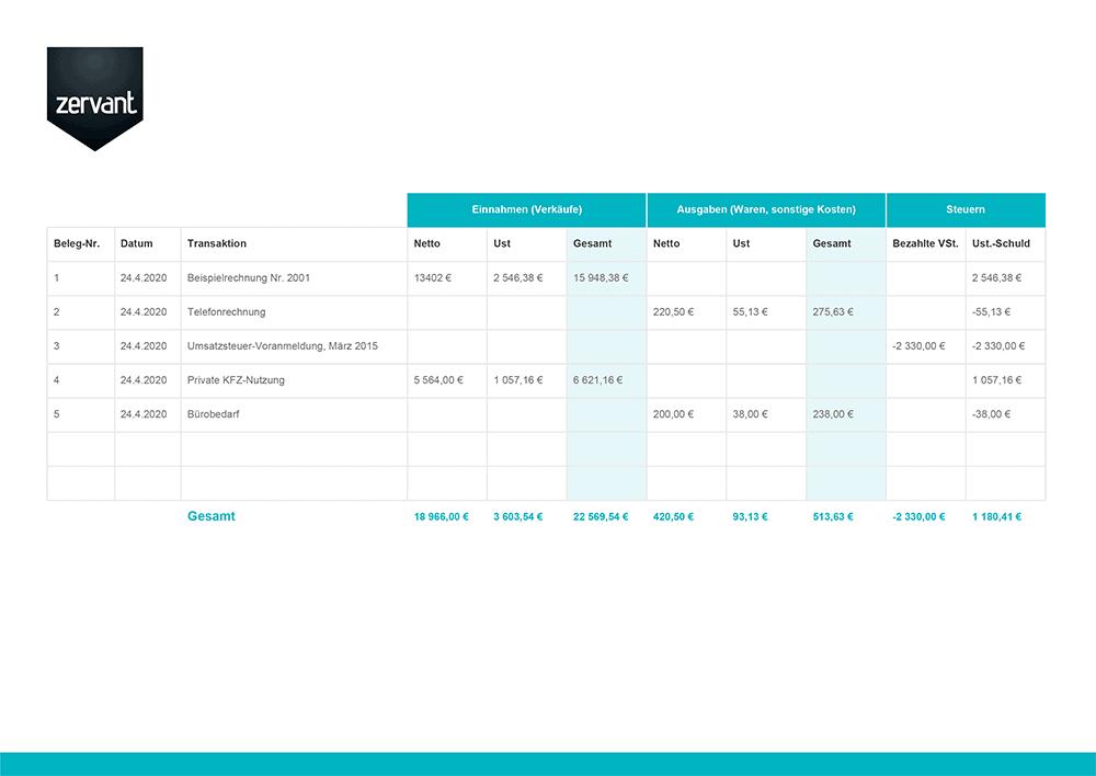 Ausgaben (Waren, sonstige Kosten): Genau wie bei den Einnahmen, gibst du hier den Nettobetrag getrennt vom USt.-Betrag an. Diese Angaben findest du auf deinen Quittungen, Lieferscheinen, Rechnungen usw. Die Tabelle berechnet dir die Gesamtsumme und die bezahlte USt. wird automatisch von deiner Steuerschuld abgezogen.