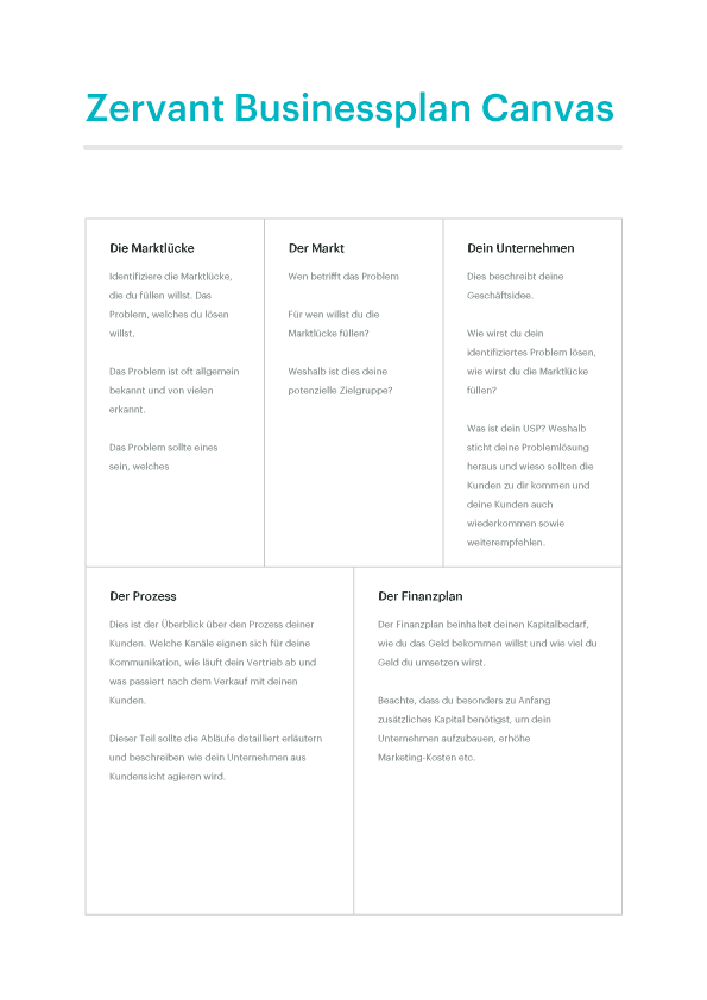 Anleitung für die Zervant Businessplan Canvas Vorlage