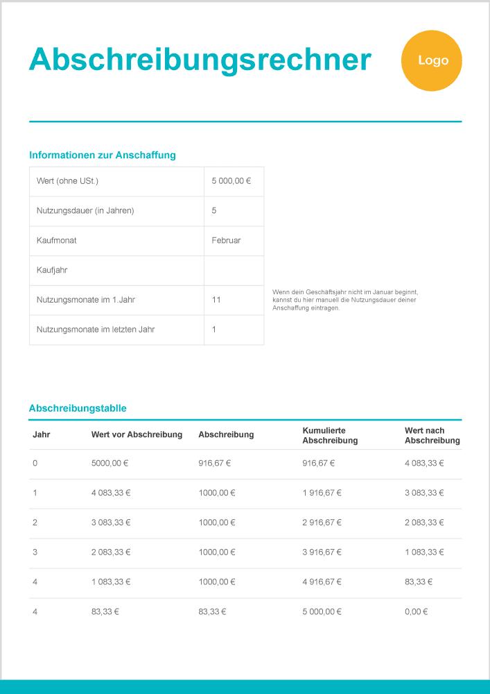 Kostenlose Abschreibungstabelle in Excel mit Anleitung