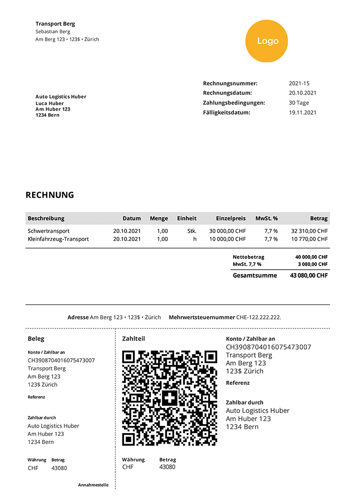 Je nachdem, in welcher Währung du deinen Kunden das Angebot erstellt hast, kannst du auch eine Rechnung in Euro oder Schweizer Franken stellen. Beim internationalen Banktransfer landet dann das Geld automatisch als Euro bei dir auf dem Konto.