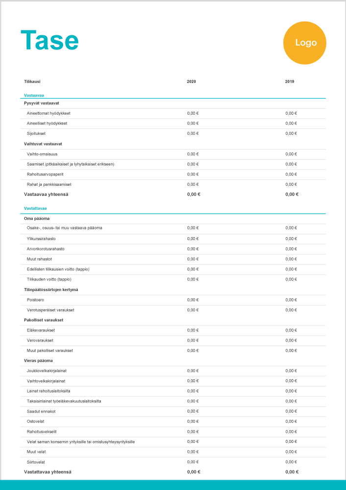 Luo ilmainen tiliTee tase tilinpäätöstä varten – ilmainen Excel-pohja