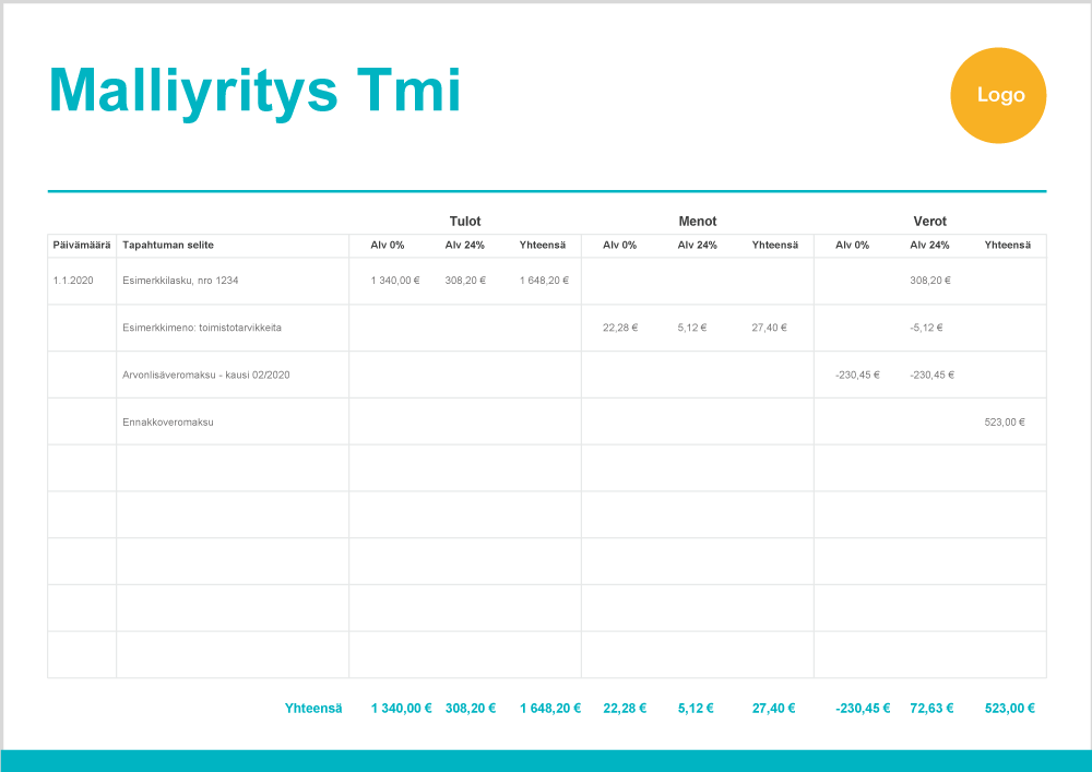 Ilmainen kirjanpitopohja yhdenkertaista kirjanpitoa varten