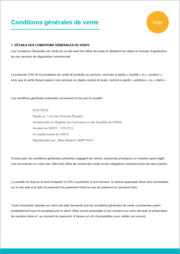 Les conditions générales de vente, ou CGV, sont les termes sous lesquelles vous pratiquez vos activités de vente ou location de produits et services. Elles encadrent vos pratiques et doivent donc s’adapter à votre statut et aux spécificités de votre entreprise. De même, elles permettent d’encadrer les conditions d’achat de vos clients, les protégeant en les informant des pratiques proposées liées à leur commande, et doivent donc être acceptées avant le règlement.
