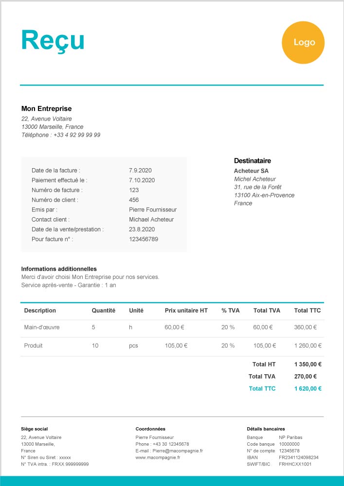 Un petit conseil, enregistrez. ou exportez, le reçu au format PDF pour un rendu inaltérable et plus professionnel.