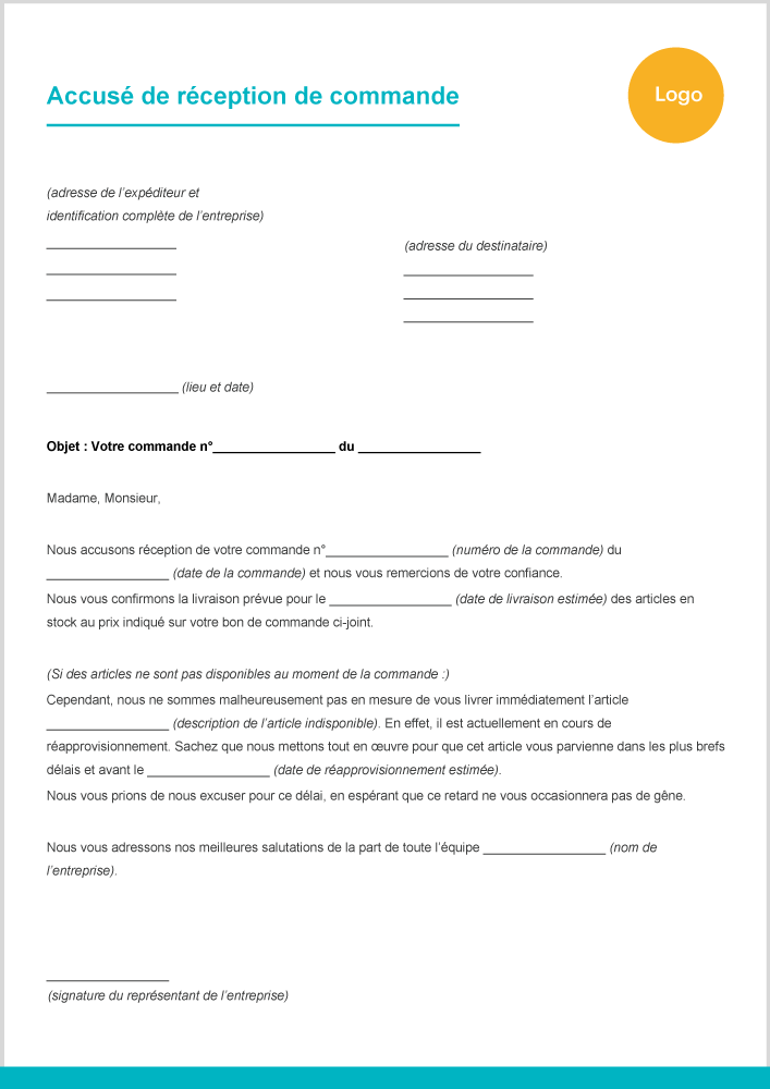 Modèle accusé de réception de commande : modèle lettre accusé de reception