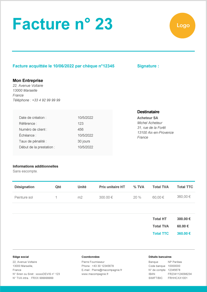 Modèle facture acquittée gratuit. Encore mieux, utilisez notre logiciel de facturation gratuit. Gérer sa facturation gratuitement