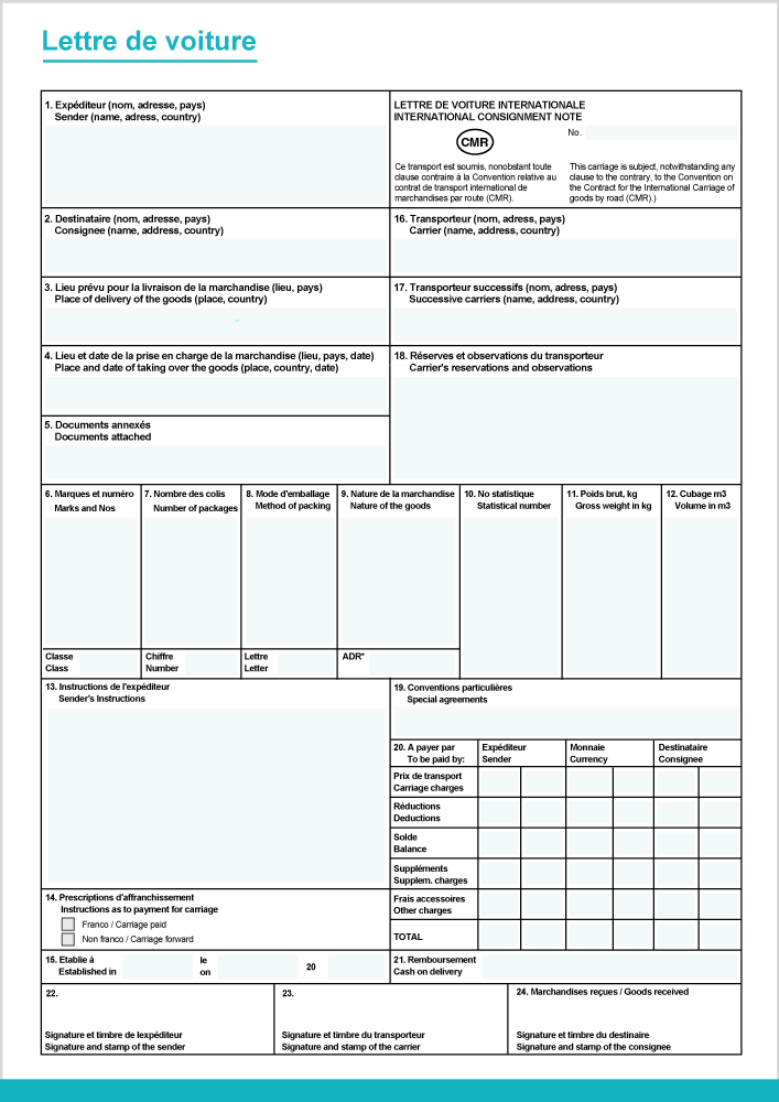 La lettre de voiture CMR peut se présenter sous diverses formes, tant que les mentions obligatoires y figurent, à savoir :
