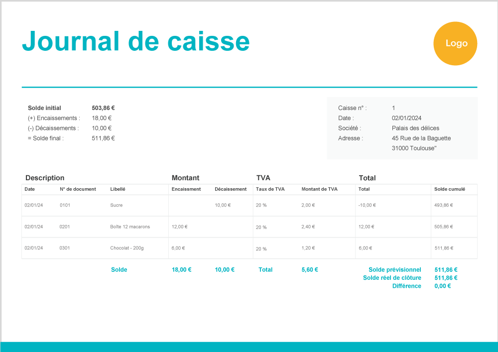 Créer un compte gratuitJournal de caisse : livre de caisse sur Excel gratuit