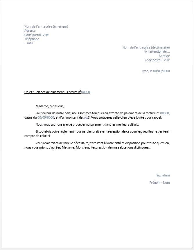 Modèle gratuit de lettre de relance de paiement