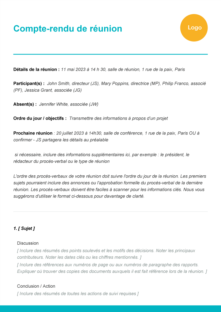 - Vérifiez l’orthographe et la grammaire du compte-rendu avant de le partager avec les participants.