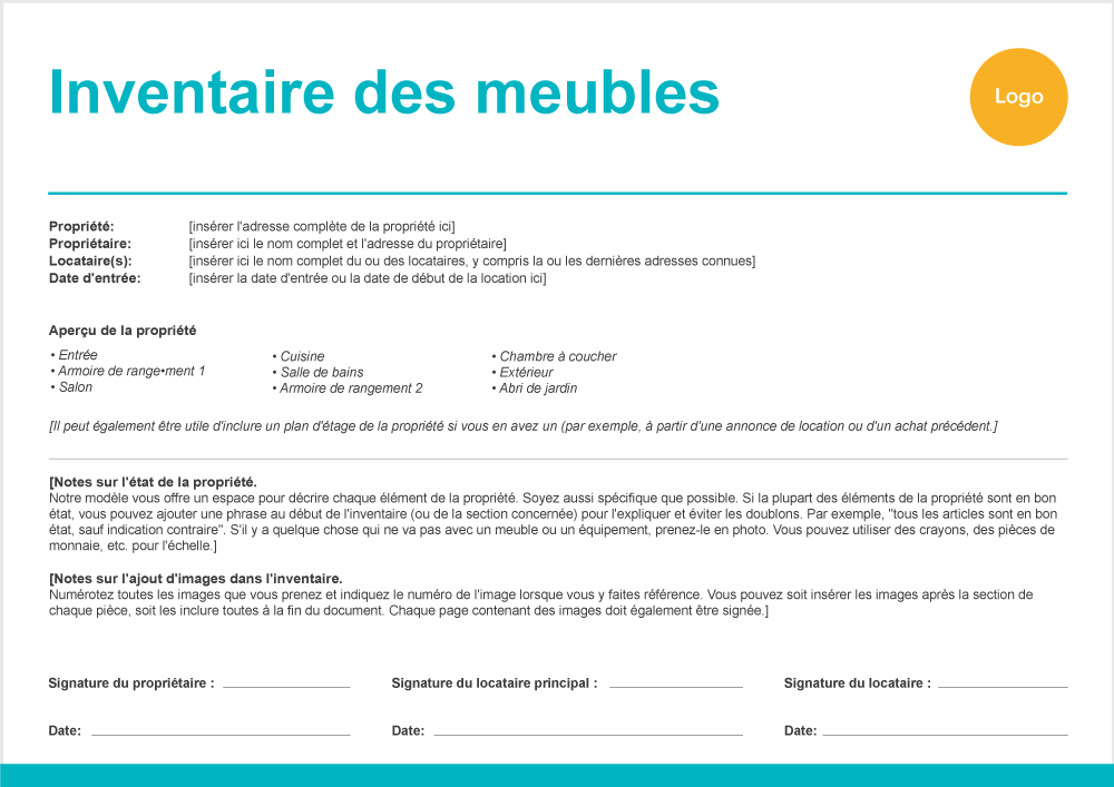 - Signature des parties : à la fin de l’inventaire, laissez un espace pour les signatures. Les deux parties doivent signer et dater l’inventaire pour attester de son exactitude.