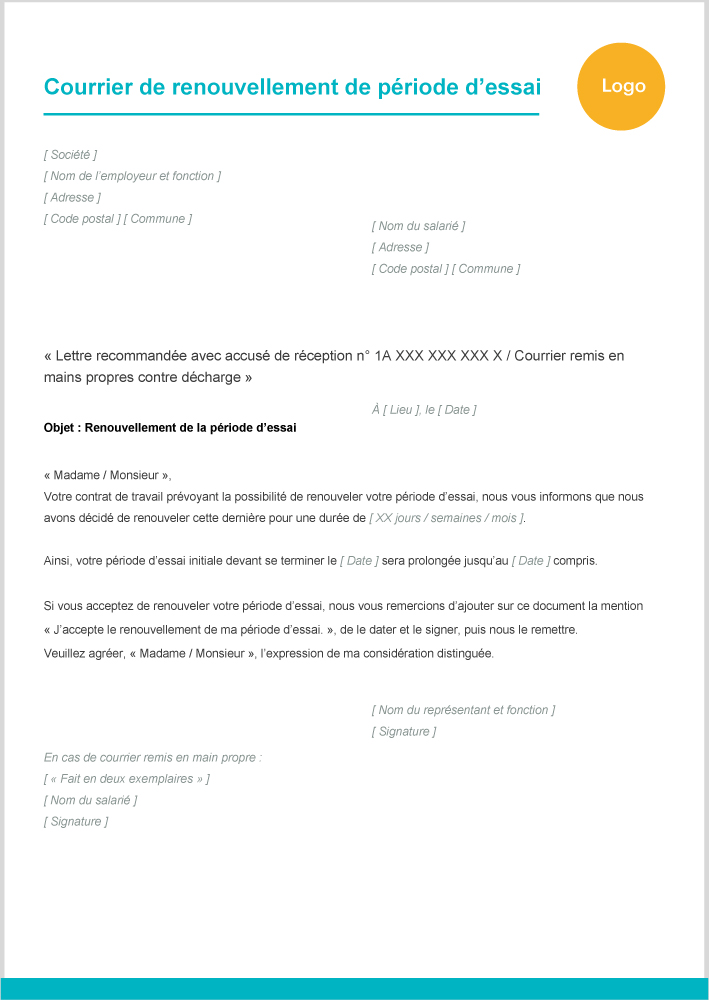 Lettre renouvellement période essai
