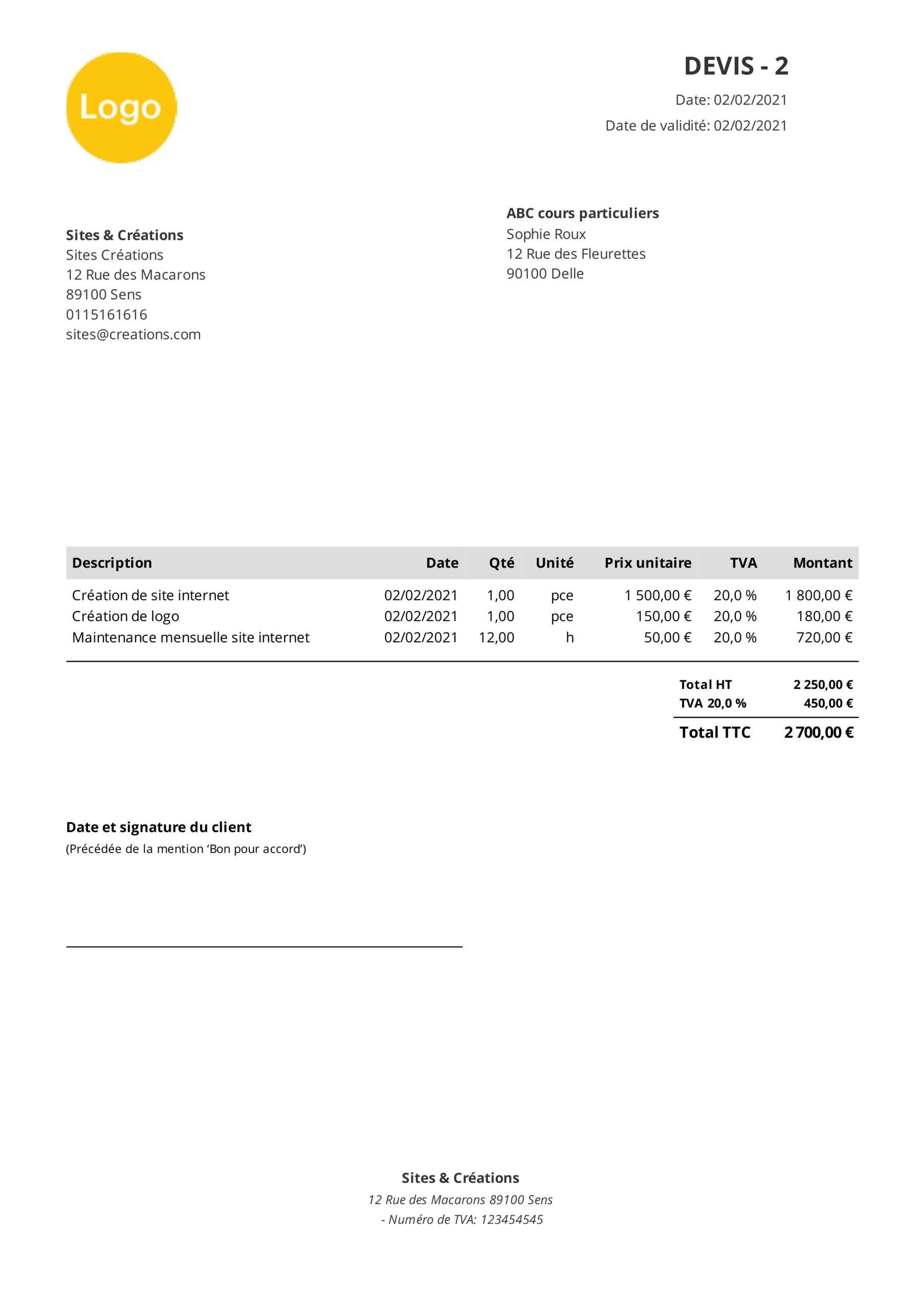 Créez ce devis avec le logiciel de facturation gratuit Zervant. Créer un devis