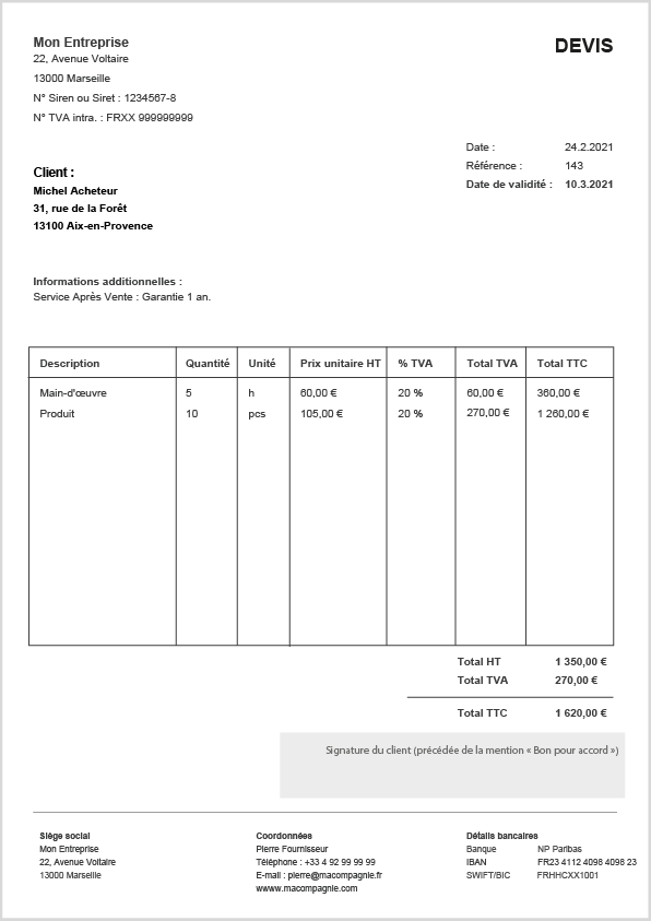 - Avec un devis, vos tarifs sont juridiquement contraignants ;