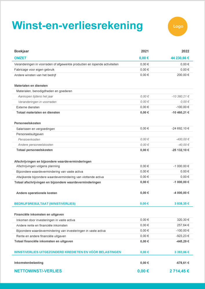 Het is naast de balans een verplicht deel van het jaarverslag van je bedrijf. De balans vermeldt je bezittingen en schulden en in de resultatenrekening staan je opbrengsten en kosten. Je moet ze allebei indienen bij de Belastingdienst: informatie van Belastingdienst over de winst-en-verliesrekening en balans.