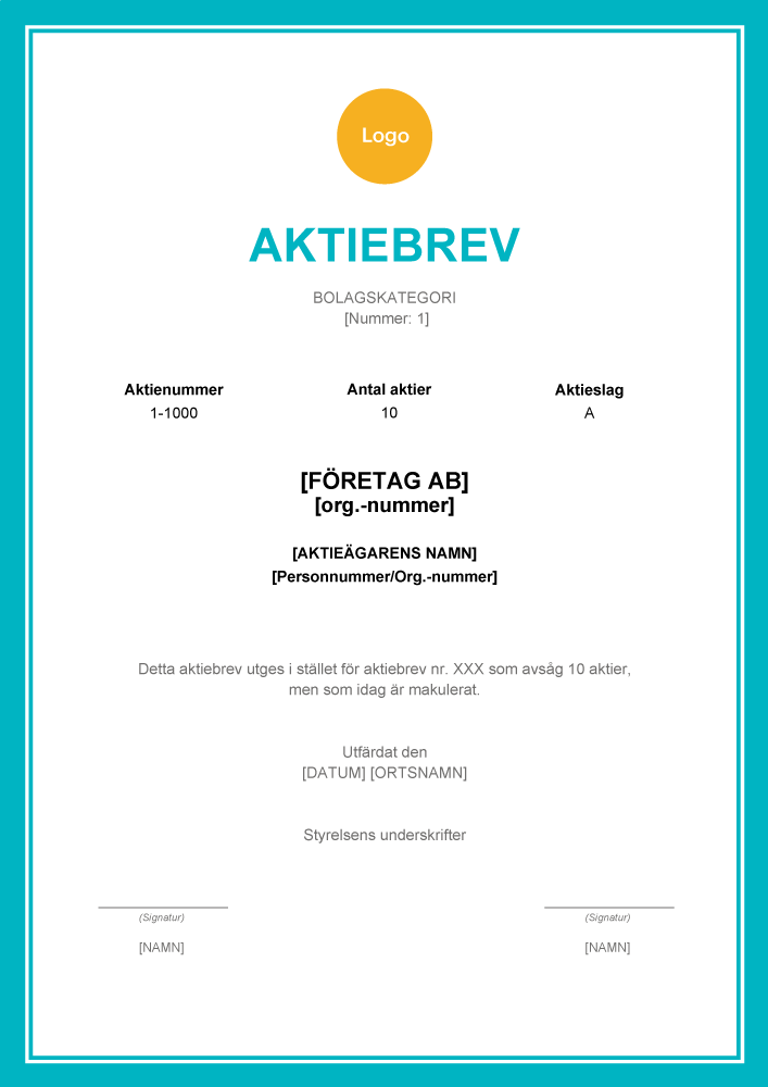 För att hjälpa dig som driver företag har vi tagit fram en mall som du kan använda. Ladda hem en gratis mall för aktiebrev här.