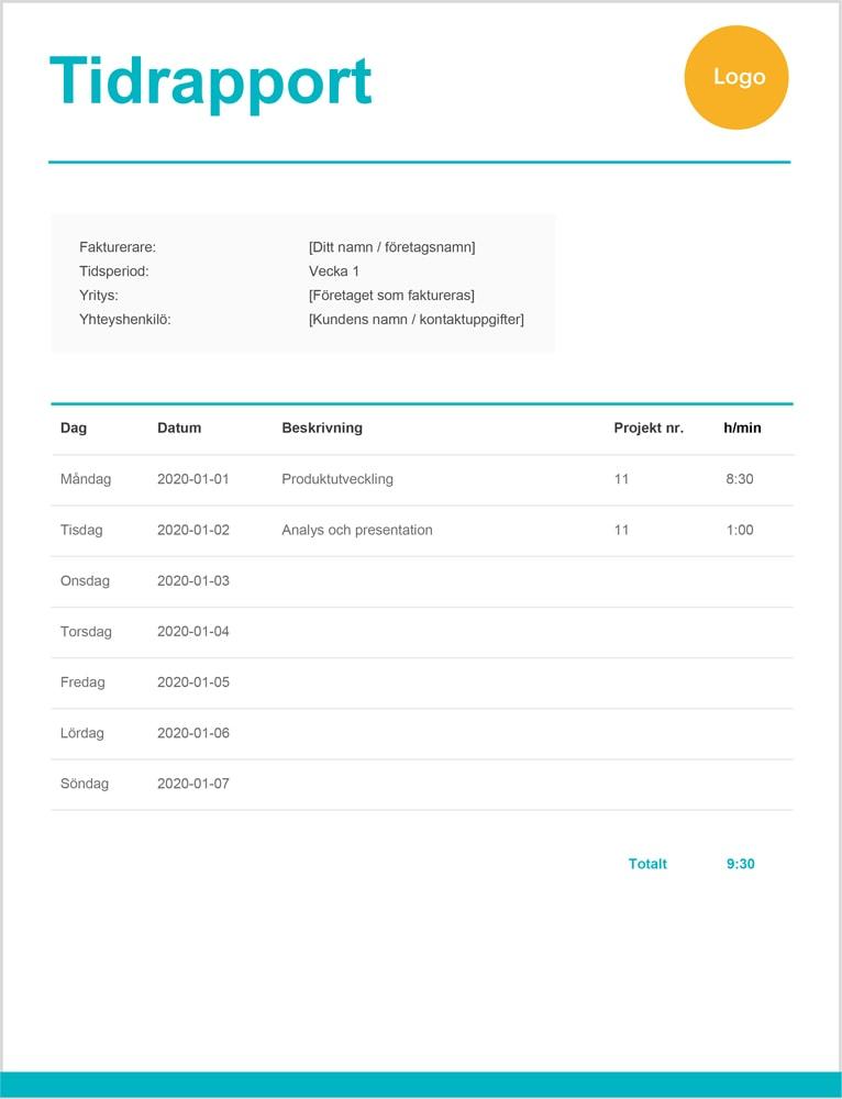 Tidrapport mall i Excel med instruktioner – ladda ner gratis