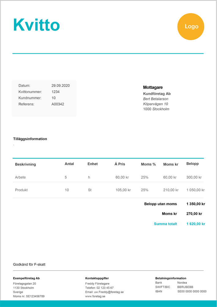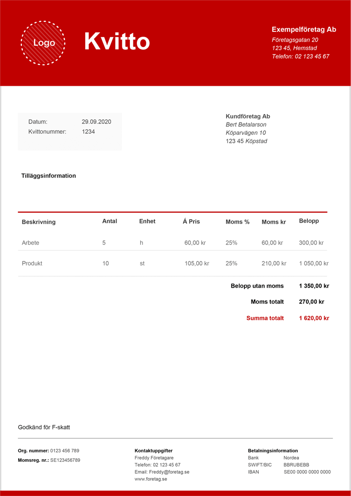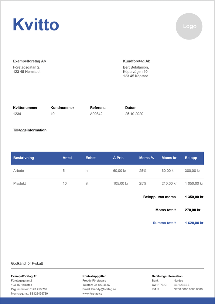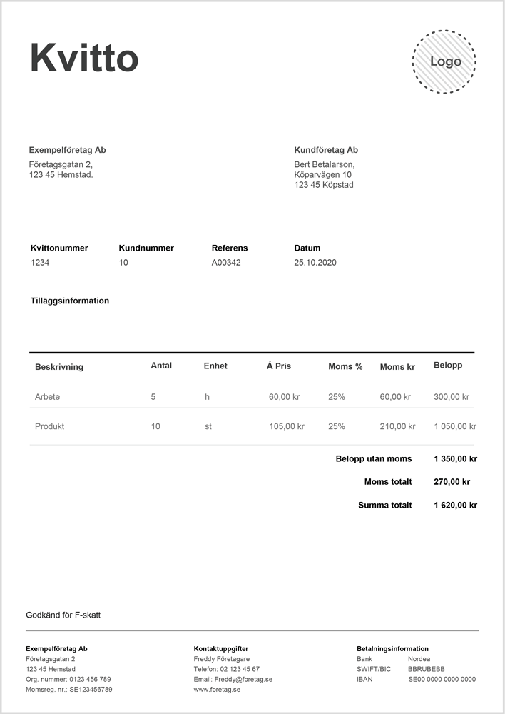 Här är det som du behöver ha med på ett normalt kvitto: